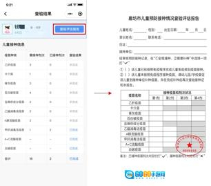 2、身份信息核验成功后,即可查看儿童的疫苗接种完成情况。点击“查验评估报告”,进入“廊坊市儿童预防接种情况查验评估报告”,该报告打印后与接种单位开具的纸质版评估报告有同等效力。长按报告保存至相册,之后即可打印该报告,连同儿童预防接种证一起提交学校、幼儿园等进行查验。