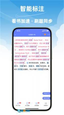 这个功能可以对文本里的重点、考点和相关真题进行标注,让用户在复习重点和练习真题时能同时开展,大大提升效率。