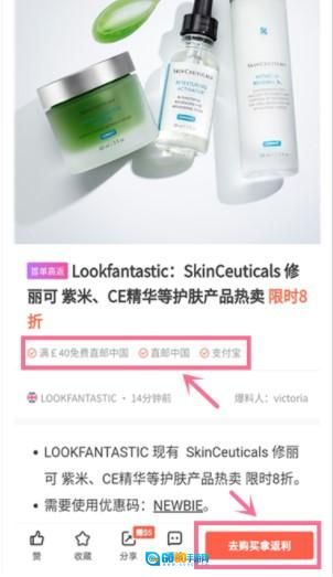 随便点开任意一条优惠信息,就能查看折扣详情,以及该网站是否提供包邮服务和支持支付宝付款;下拉页面至底部,还能找到下单攻略。