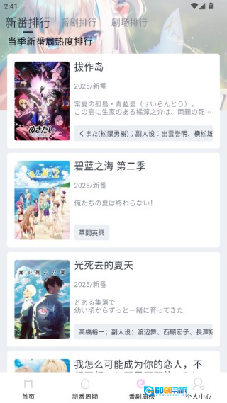 2.你可以在这里看到当季新番的热度排行榜,像拔作岛、碧蓝之海这类动漫,都能在这里找到。