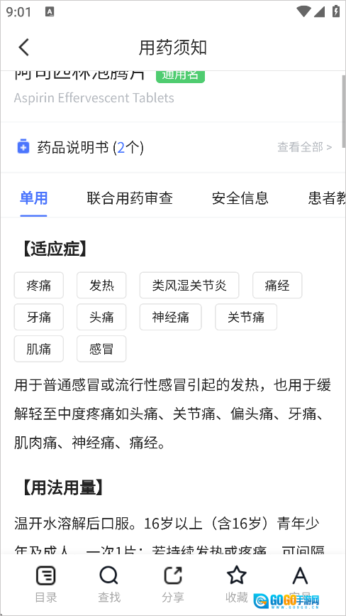 4、进来之后你就可以清晰地看到药品的适应症以及用法用量等等