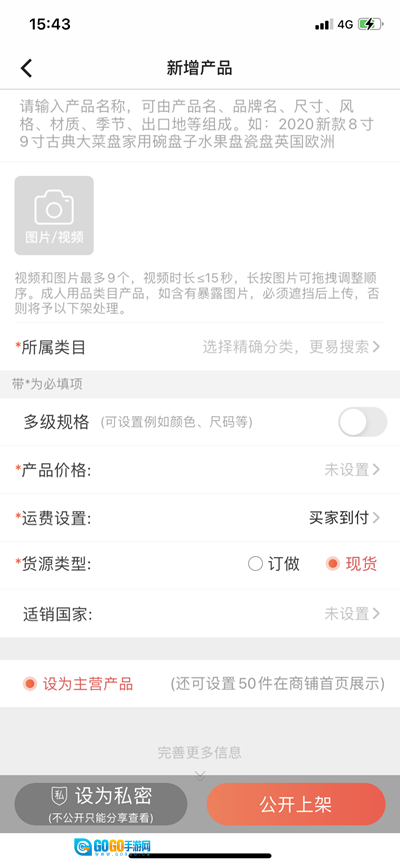 5.选择【所属类目】一定要按商品的分类正确选择!如果商品放在了错误的类目里,将无法搜索到这款产品,且排名会非常靠后。
