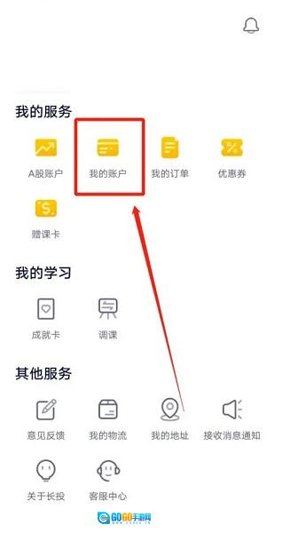 3、进入“我的”页面后,找到并点击图中所示位置的“我的账户”选项。