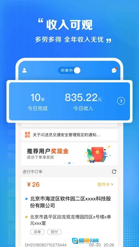 实时收益与账户管理:闪送员可实时查看每笔订单的收入、账户总余额以及各项补贴明细。平台提供自助提现功能,流程简单,到账时间明确。
