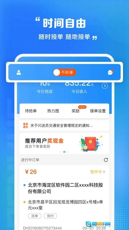 高度自主的灵活就业模式:闪送员可完全自主决定上线接单的时间、地点与时长,实现“不坐班”的工作方式。平台提供24小时订单推送,特别设有夜间订单补助,充分适应学生、上班族等各类人群的兼职或全职需求。