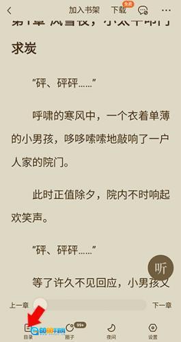 1、同样选择想要观看的小说后,来到小说阅读界面,点击小说正中间区域即可弹出菜单。