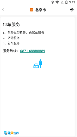 2、进入之后,我们就能看到包车服务的具体内容以及服务的联系热线了。