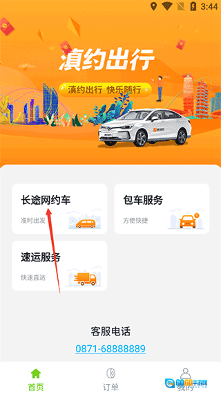 3、接下来我们返回首页,我来教大家怎么打长途网约车,点击页面上的长途网约车选项就可以了。