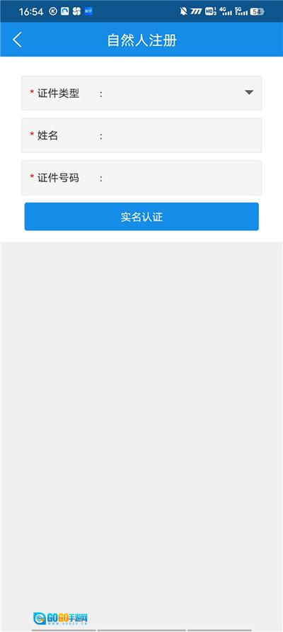 3、然后输入自己的证件信息点击实名认证,这里一定要用本人的,不能够冒名其他的进行,否则无法通过实名认证。