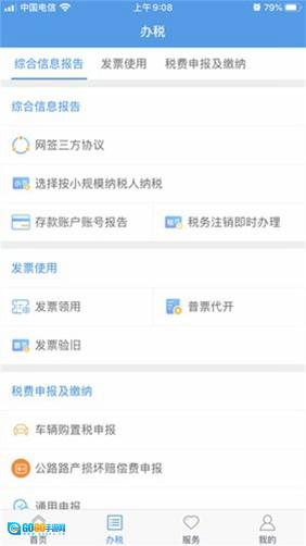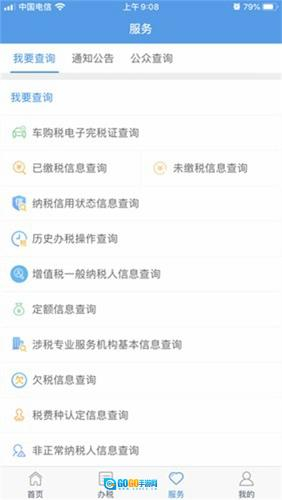 信息查询:提供办税指南、大厅实况、发票信息、企业纳税情况、欠税信息等综合查询服务。