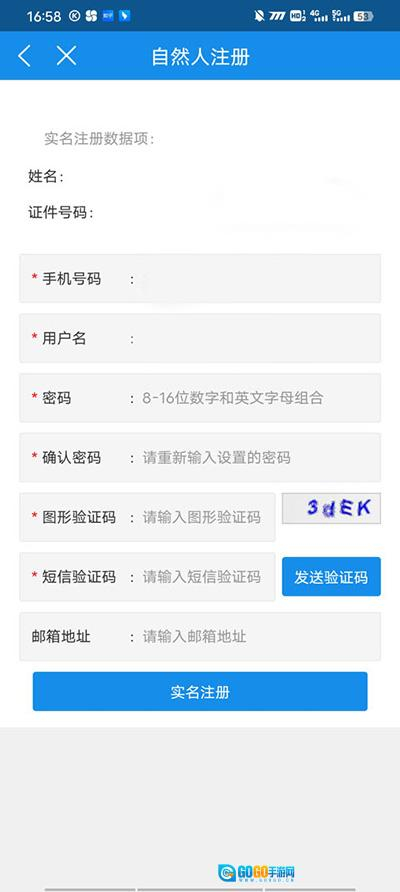 2、选择个人业务,点击用户注册填写自然人的注册信息,填写完整后保存。