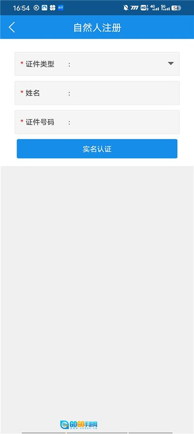 2、里面有个人用户和企业用户,我们选择个人新用户注册,选择证件类型、证件号和姓名,点击实名认证;
