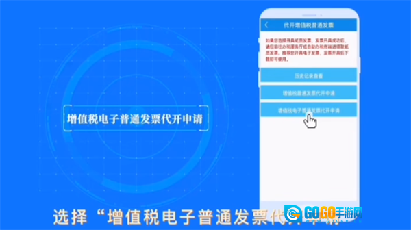 4、然后进入到代开发票界面,选择“增值税电子普通发票代开申请”。