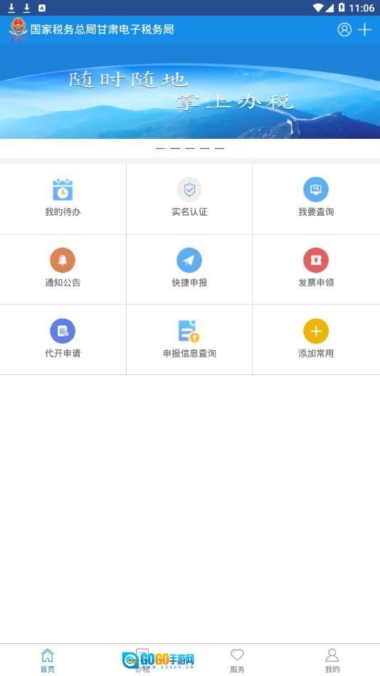 1、先在当快安装好甘肃税务手机,进入到首页。