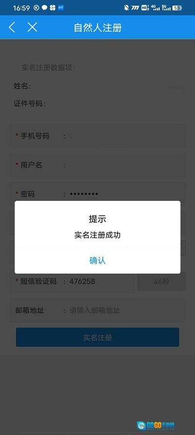 6、它会自定自己的用户名,设置自己的密码,输入图形码、验证码,点击实名注册;