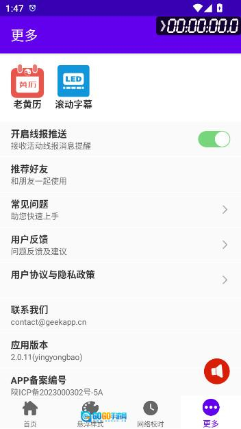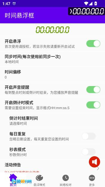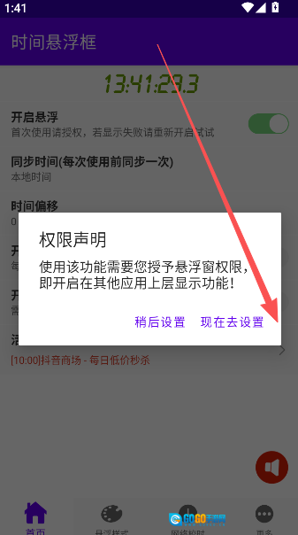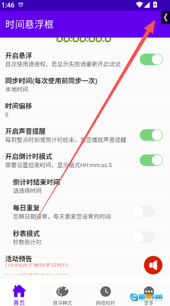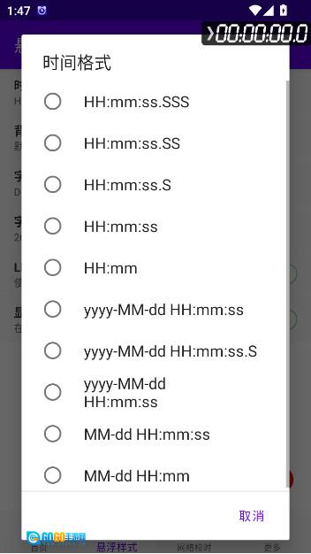 悬浮时间显示功能:在手机的任意界面顶端,通过悬浮窗的形式,显示精确到毫秒的当前时间。