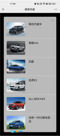 3、点击“介绍”选项,选择“Kia Connect手册”,然后点击选择对应的车型。