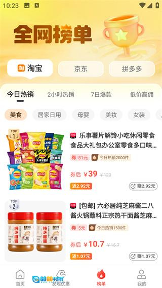 4、点击下方工具栏的榜单,就能快速查看各大购物平台的热销产品。