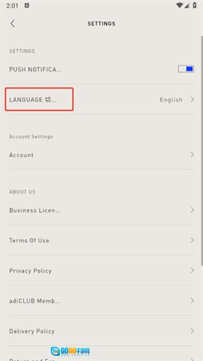 4、最后点击进入LANGUAGE页面,勾选中文后保存,重启应用即可完成设置。