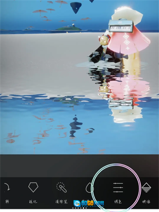 4、实现水面倒影效果,可依据实际需求对模糊、调色、样式等参数进行设置,设置完成后点击对勾确认即可。