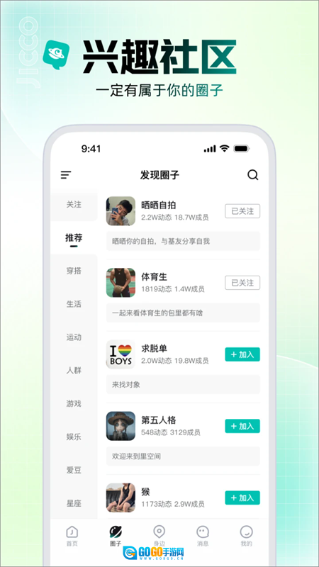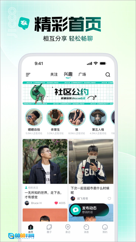 Jicco是一款基于兴趣爱好的社交交友软件,用户可依据自身喜好自由加入多个兴趣圈子,助力大家更便捷地接触不同领域,既能解锁新技能,也能快速结识志同道合的伙伴。平台支持用户实时共享个人位置,方便与好友线下见面互动;同时,用户还能在这里分享日常生活点滴,尽情展现生活中最真实纯粹的一面。