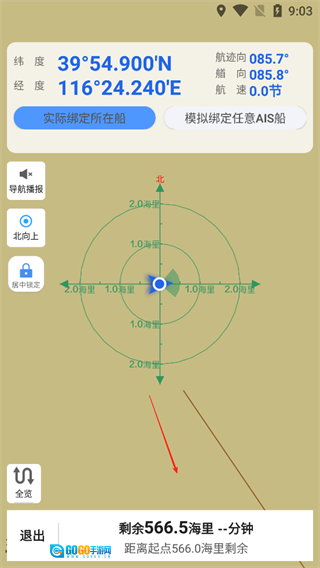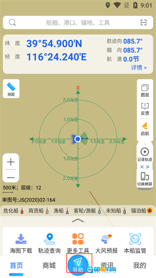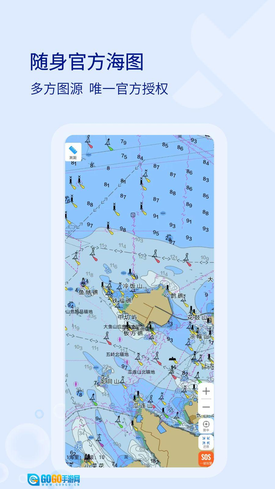 2、将海图设为背景图后,可借助手机GPS功能实现定位、测速与测距。