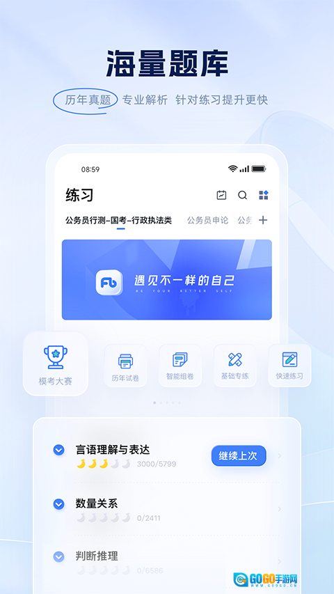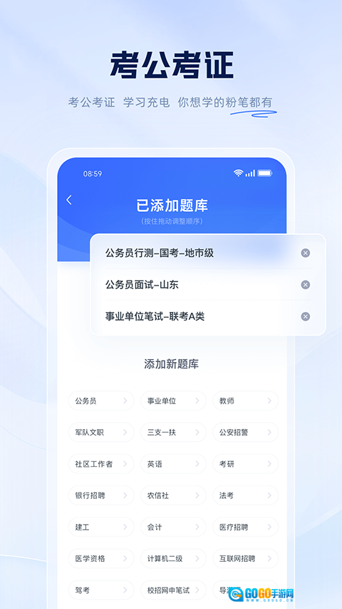 6、全面覆盖多个考试类型:涵盖公务员、教师、司考三大类考试,依据考试目标配备专属题库与直播课。