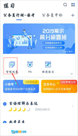 1、打开手机粉笔公考,进入首页后点击智能组卷。