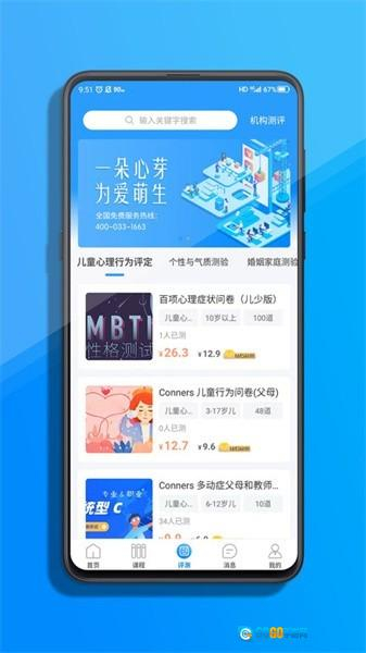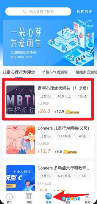 4、评测页面涵盖儿童心理行为评定、婚姻家庭相关问卷等多类心理测评项目,用户选定相应测评后,便能直接在线完成答题流程。