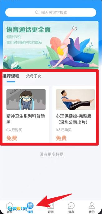3、在课程板块,用户可以浏览精神卫生系列科普动画、心理保健操等推荐课程,点击就能开始学习。