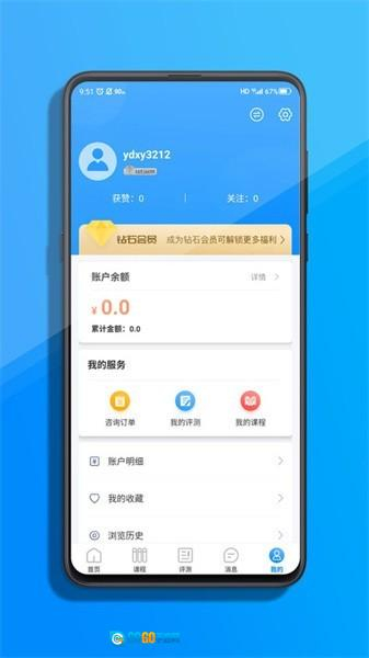 5、在“我的”页面中,用户能够查看账户余额、咨询订单,还可以查看收藏记录和浏览历史,方便对个人学习与服务进行管理。