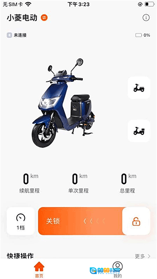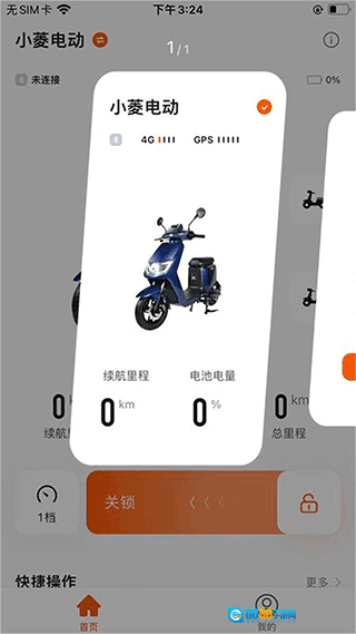 1、开启软件后,首页可打开蓝牙,完成小菱电动车绑定;