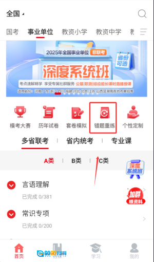 4、事业单位错题重练功能自动汇总所有练习中的错误题目,生成专项强化训练集合以便重点突破。