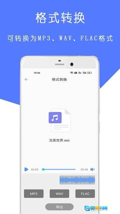 3、支持格式转换:能够将音频在多种格式之间互相转换,如MP3、WAV、AAC、M4A等,方便在不同设备或平台使用。