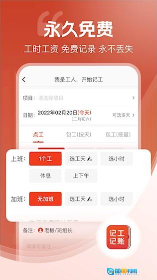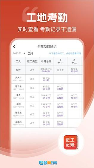 1、工时记录清晰:可按天、按项目记录工作时间,自动汇总总工时,便于月底对账或结算工资。