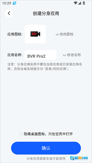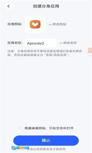 3、自定义设置:可为每个分身应用修改图标、名称,还能隐藏桌面图标,兼顾个性需求与隐私保护