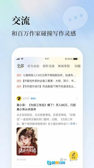 七猫作家助手是一款面向小说创作者的移动写作工具,能让作者随时随地进行小说章节的创建、编辑与发布,还可帮助他们实时了解作品的阅读数据及收益状况,同时整合了草稿自动保存、多端同步、错字检测等实用功能,让创作过程更加顺畅无忧。