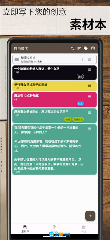 1、随时打开软件整理所需故事素材,无需耗费过多时间即可完成写作。