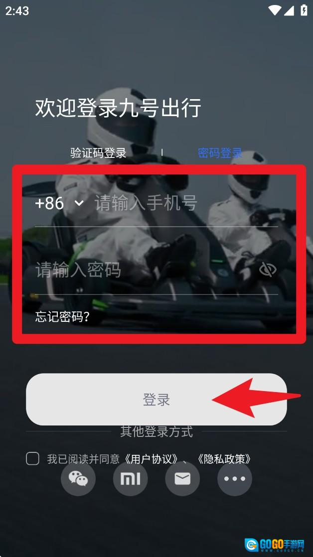 1. 进入App后先进行登录操作,输入手机号及密码,点击下方登录按钮完成身份验证,选择其他方式登录账户。