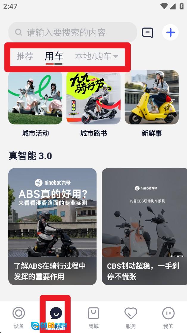 3. 点击底部圈子标签页可浏览骑行资讯与热门活动,切换用车分类可查看骑行测评、推荐内容。