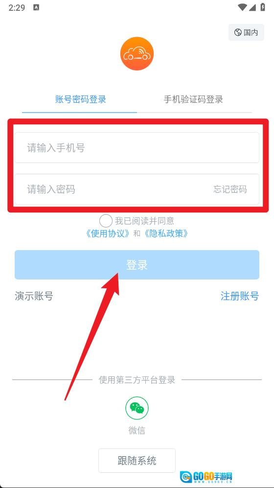 2、进入登录页面后,可选择输入手机号与密码登录,也能通过手机验证码进行快捷登录,操作时需勾选同意协议内容,再点击登录按钮。