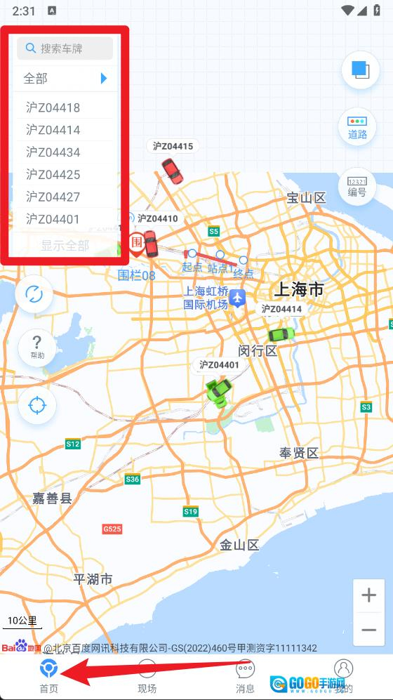 3、首页模块支持通过地图实时查看车辆分布及车牌信息,同时具备搜索与筛选功能,便于用户快速进行车辆定位与调度操作。