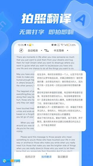 3、拍照识字翻译功能:当遇到外文菜单、说明书或者路牌时,只需将设备对准这些内容进行拍照,应用就会自动识别出图片里的文字,并且提供相应的译文。
