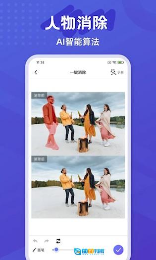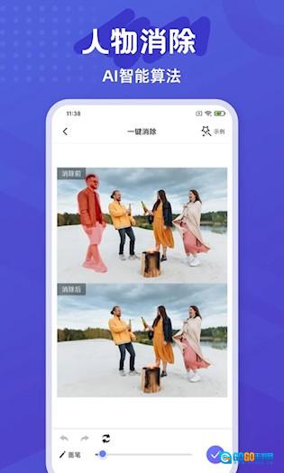 1、一键清除杂物:只需用手指在图片上涂抹掉想要去除的部分,系统就会自动分析周边环境并填补空缺,让画面回归干净整洁的状态。