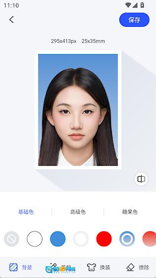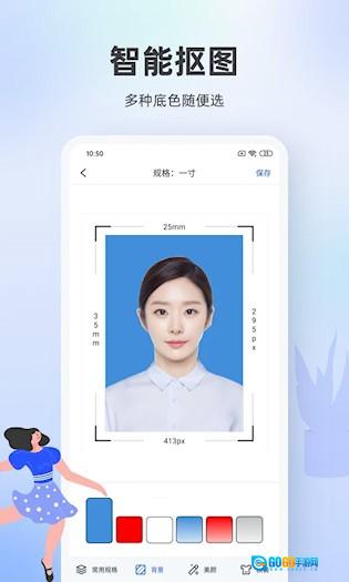 2、智能背景替换功能:可自动精准识别人像轮廓,只需一键操作,就能将背景更换为红、蓝、白等标准色,且边缘过渡自然,不会显得生硬。