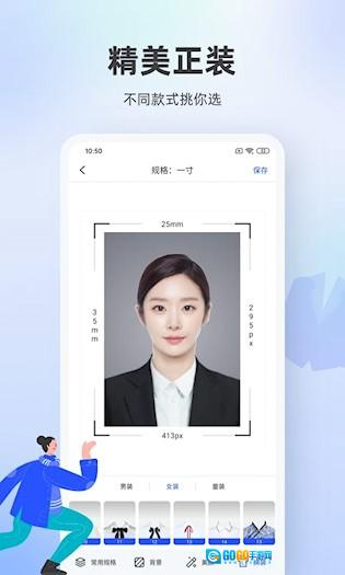 4、虚拟正装搭配功能:提供多款男女正装模板,能叠加到自拍照上,帮用户省去临时找正装的麻烦。