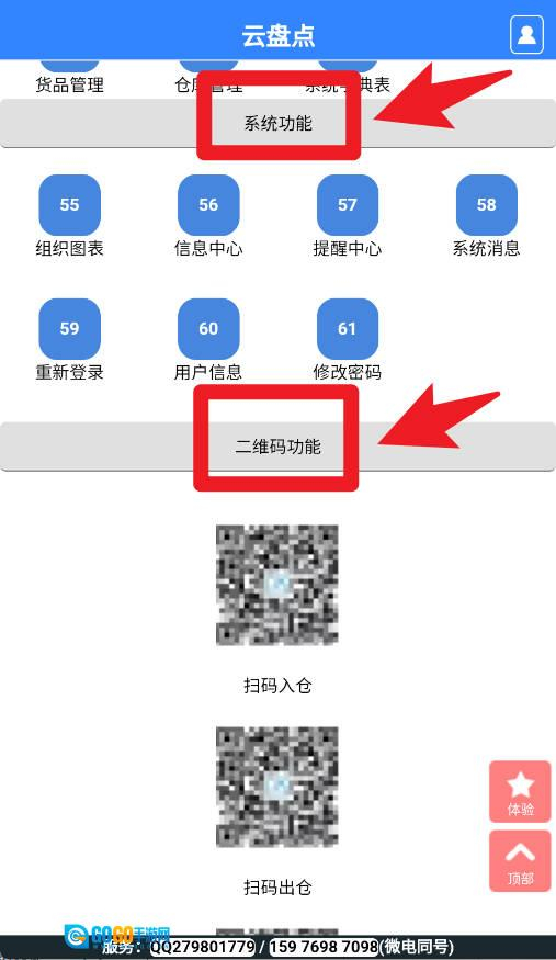 5、系统功能与二维码功能模块具备组织图表展示、信息中心服务、密码修改功能以及扫码出入库操作等能力,以保障使用过程更加便捷且安全。