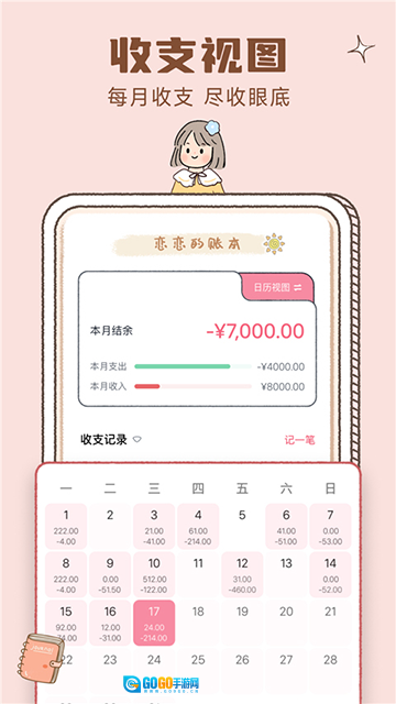 4、收支视图清晰呈现,每月收支情况一目了然。