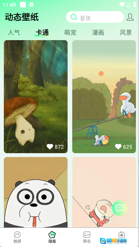 1、在启萌壁纸里,你可以不受限制地浏览数量庞大的高清壁纸资源,这些资源涵盖了静态和动态两种类型。