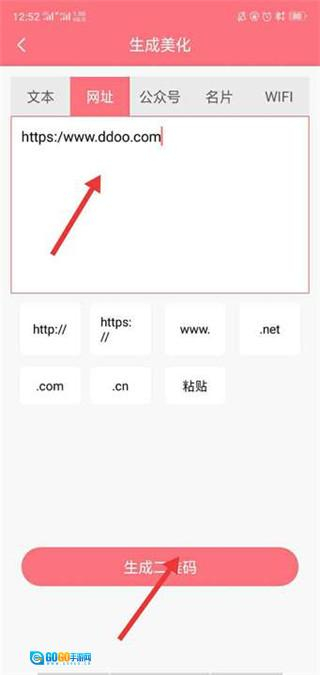 2、输入需要生成对应类型二维码的信息,例如输入网址后,点击生成二维码